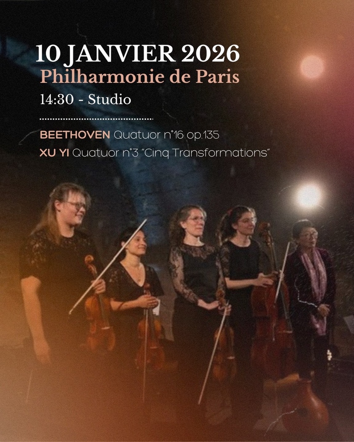 Le Quatuor Akilone est l’invité de la Biennale de quatuors à cordes de la Philharmonie de Paris ce samedi 10 janvier à 14h30 avec un programme Beethoven - Xu Yi !
